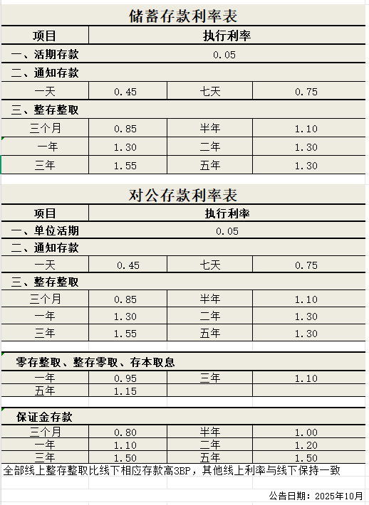 线下单位及个人人民币存款利率
